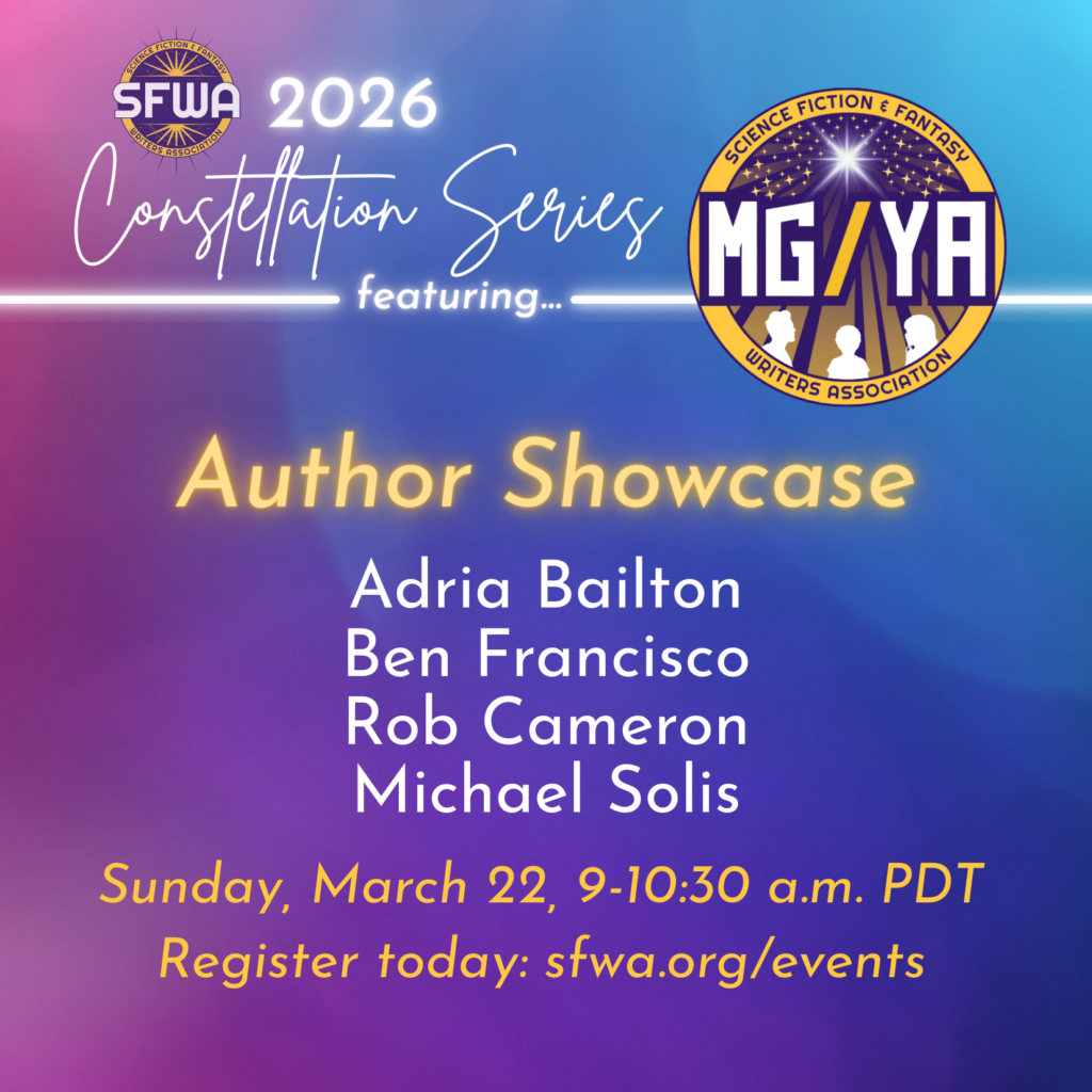SFWA is home to a wide range of action and interest groups, and we look forward to celebrating and showcasing their work with fellow SFWA Members and the general public in our new Constellation Series, a quarterly professional development weekend that focuses on the needs and interests of one or two volunteer-led committees at SFWA. Some events focus on training specific to our volunteers. Others give SFWA Members opportunities to explore membership benefits and the general public a chance to get to know our volunteer-driven work and the brilliant SFF creators behind it. Bookmark this page and check back for future events!
