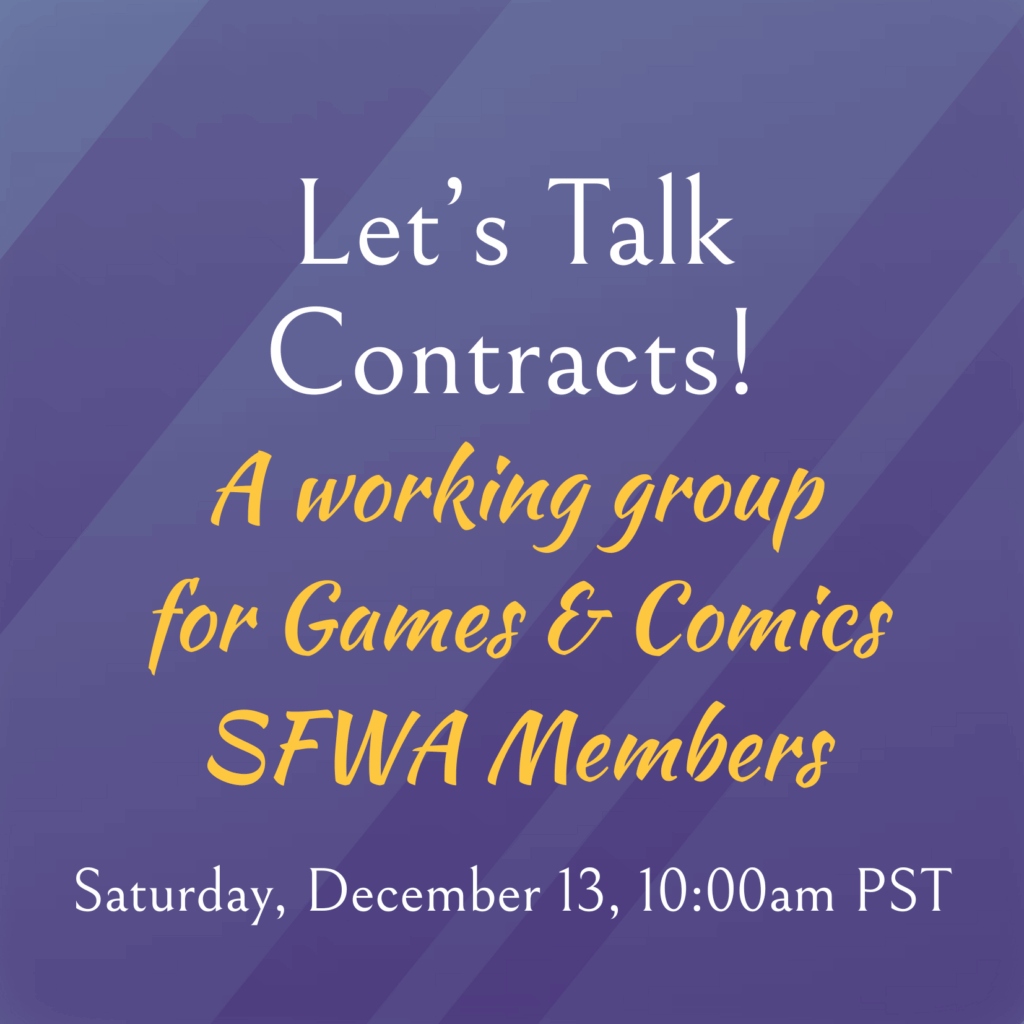 This December, SFWA Members can join Game Writing & Comics to work on Best Practices, Building Cultures of Pay Rate Transparency, and marketing workshops!