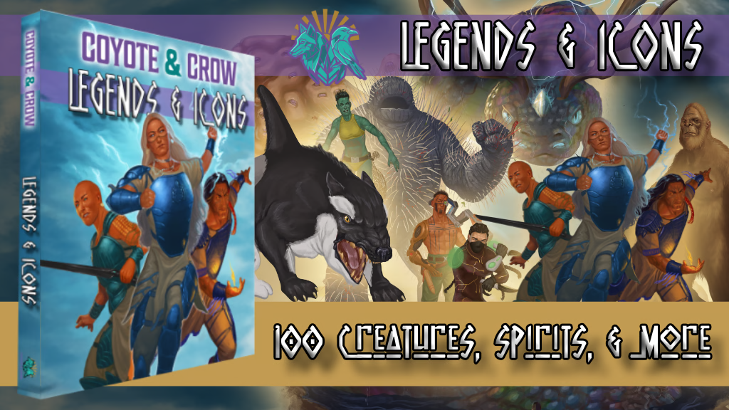 Legends & Icons is bringing you what so many of you have asked for: a book full of creatures, spirits, deadly warriors, dangerous cults and more. These Legends & Icons will help you bring new and exciting challenges to your Coyote & Crow players!