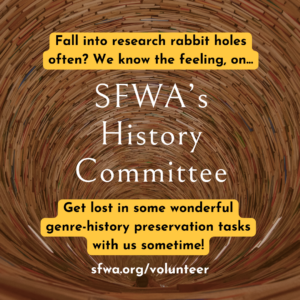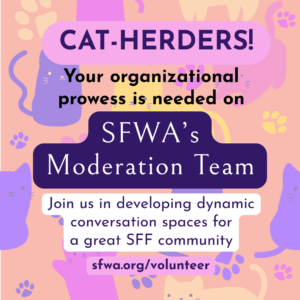 One of the best parts of being an accomplished creator is being able to give back to your community. If you have ever chosen to do so through SFWA, thank you. If you are doing so right now? AMAZING. You’re the best! And if you would like to start volunteering, we have a series of open calls available with our sign-up form here.